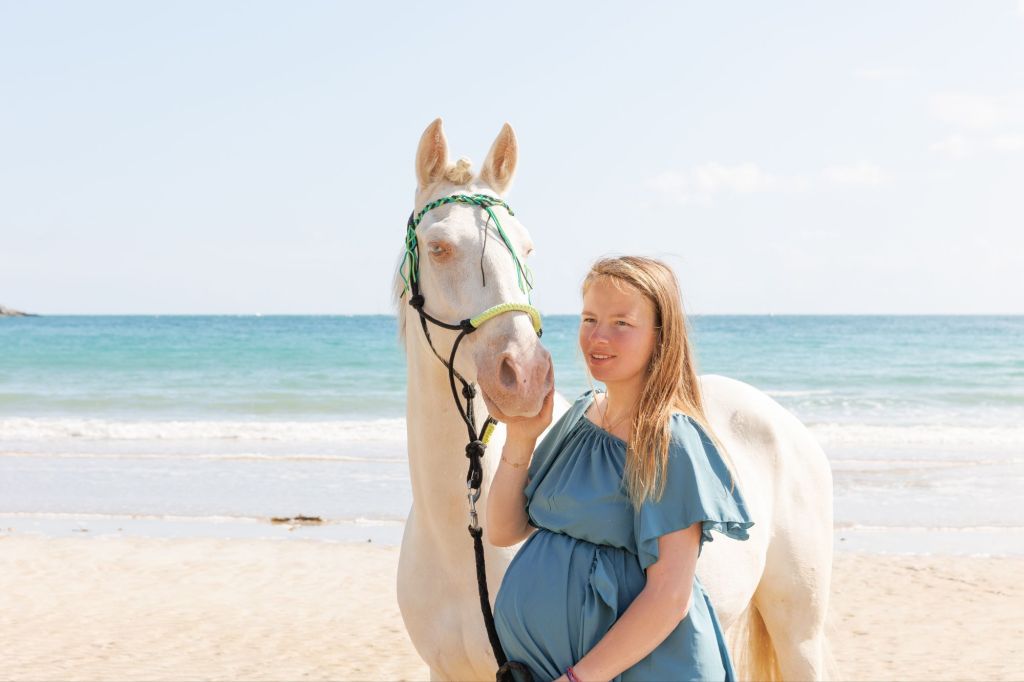 Poser à cheval pendant la grossesse symbolise à la fois la force et la douceur.