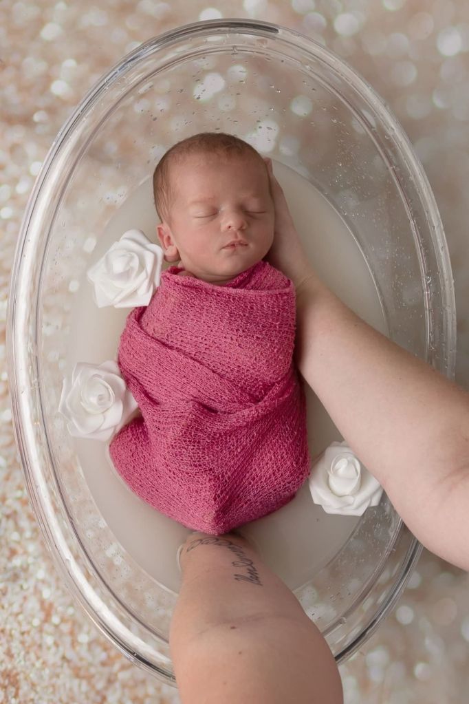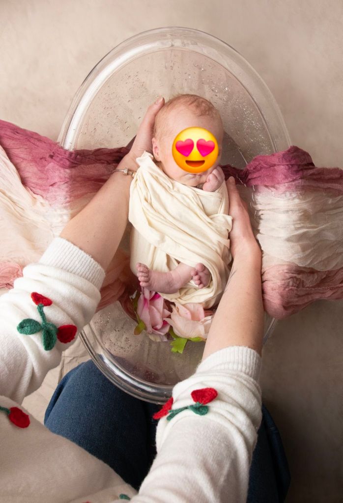 Le bain de lait offre un rendu visuel doux et lumineux. L’eau légèrement blanchie sublime la peau de bébé et crée une atmosphère épurée et élégante.